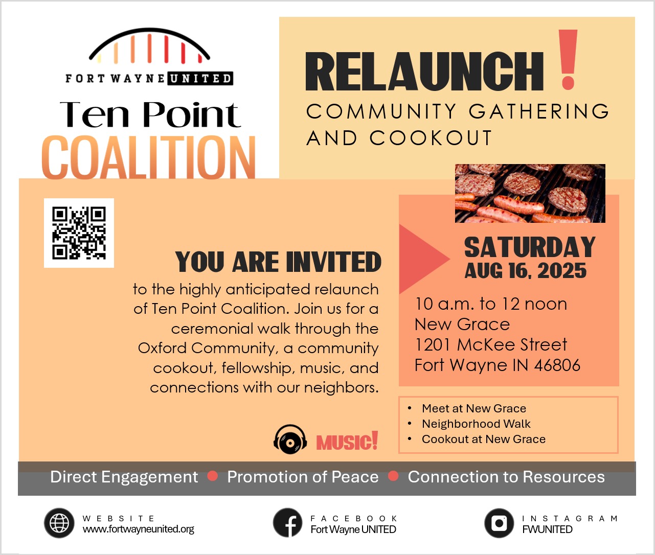 The Fort Wayne UNITED Ten Point Coalition is influencing the lives of young people, families, local businesses, and neighborhoods by implementing proactive strategies to reduce violence and emphasize the importance of education, employment and community partnerships.